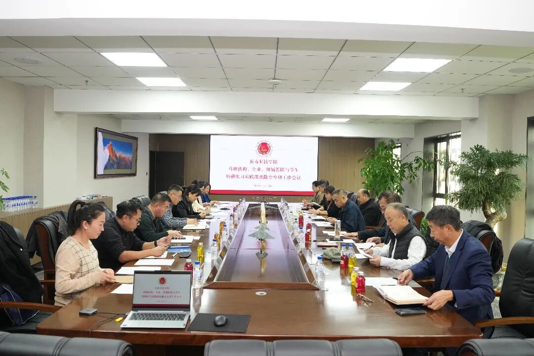 2025 年 11 月 11 日 13:30,科研机构、企业、附属医院与学生科研实习实践深度融合专项工作会议在行政楼 9 楼903 会议室召开。东华教育集团董事局主席、长春科技学院董事长张电达,校长栾立明等学校领导,东鳌鹿业、鹿茸所、 中韩动物科学研究院、长白山野生资源研究院、附属医院、生命科学学院、医药学院、科研处负责人参加会议,会议由学校主管科研副校长主持。会议上,鹿茸所、 中韩动物科学研究院、长白山野生资源研究院、东鳌鹿业、...