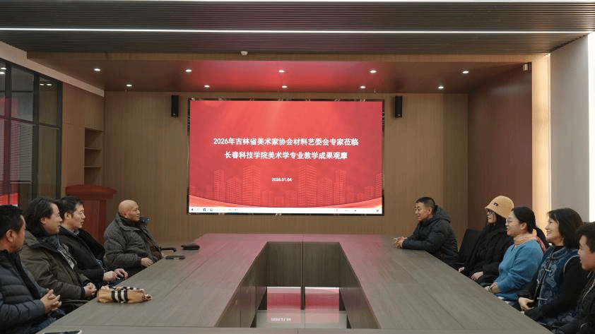 2026年 1月 4 日吉林省美术家协会副主席、秘书长高岭,吉林省美术家协会综合材料艺术委员会主任、长春人文学院美术与设计学院院长宋学智教授,吉林省美术家协会副主席、长春师范大学美术学院院长曲鸽教授等业界专家莅临学院,观摩美术学专业教学成果。视觉艺术学院院长李文成、教学副院长李雪梅、科研副院长刘阳、综合办公室主任董春宇、美术学专业副主任王宽及水墨实验室主任董成磊全程陪同交流。专家们一行首先来到吉林省视觉艺术创新研究中心,...