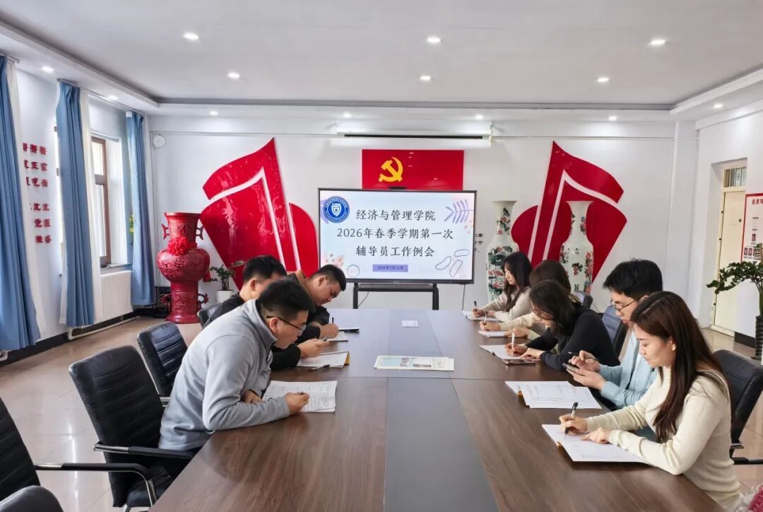 为筑牢校园安全防线、涵养优良校风学风,引导全体同学健康、有序、文明度过新学期,经济与管理学院召开新学期第一次辅导员工作例会。经济与管理学院党总支副书记武强,学工办主任刘嘉南,分团委书记冯也以及全体辅导员老师共同参会。会上,副书记武强就学生管理做出明确要求,他表示:全体学生需保持寝室整洁,规范物品摆放;严格执行人走断电制度,远离大功率违规电器;坚决杜绝寝室饮酒行为,筑牢居家安全底线。校园全域禁止吸烟,...