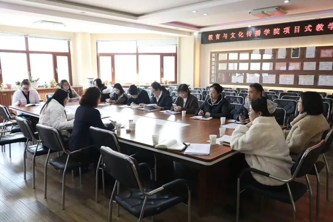 为深化项目式教学改革,提升人才培养质量,保障新学期教学工作平稳有序推进,3月12日,教育与文化传播学院于1217会议室召开项目式教学研讨会。院长王巍、党总支副书记张贺亮、副院长金秀英及教育与文化传播学院各专业主任及助理参会。会议伊始,王巍院长围绕研讨会主题与学院整体工作作出全面部署,要求各专业主任全面摸排师生基本信息与教学开展条件,严格落实办公及实训场地的安全管理规范,扎实做好各项联合检查筹备工作,以坚实的基础保障,...
