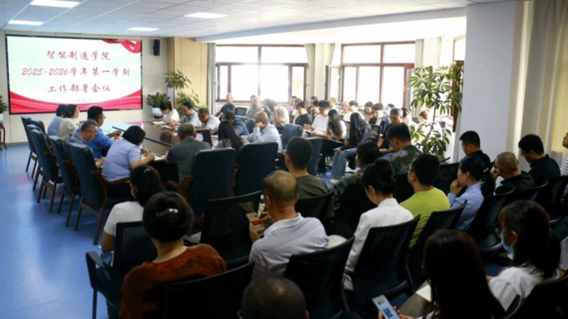 为进一步凝聚全院力量、明确发展方向,推进学科建设、人才培养。智能制造学院于9月11日下午1点,在1211会议室召开2025-2026学年新学期工作部署大会。学院党总支书记、院长杨继,副书记臧连兴,副院长隋庆茹、副院长刘晓彦,各专业主任、各办公室主任及全体教师共同参会,会议由院长杨继主持。隋庆茹副院长详细安排教学工作。毕业与设计指导上,明确2025届毕业论文资料检查、汇总上传要求,2026届需提前安排毕业设计指导教师以保障进度;...