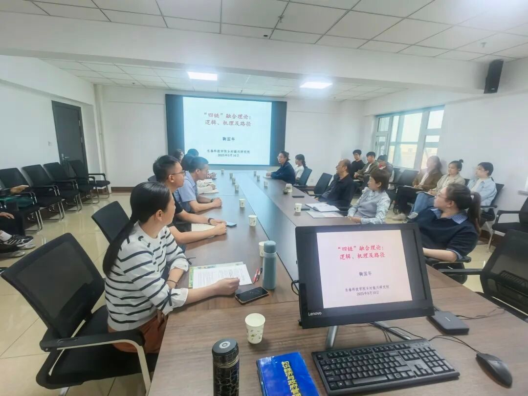 9月16日,乡村振兴研究院联合农村金融创新研究所在行政楼608会议室举办题为《“四链”融合理论:逻辑、机理及路径》的学术沙龙活动,长春科技学院学术委员会主任、乡村振兴研究院院长戚欣,经济与管理学院院长赵立夫,副院长成颖,相关学院、科研单位的部分专家、教师参会。沙龙活动由农村金融创新研究所副所长孙速超主持。戚欣主任在开场致辞中提到:学术沙龙活动是促进科研成果向教学成果转化的途径,是对教学进行反哺的过程,组织学术沙龙是确保我校科研实战性内容和理论探讨的重要通道,...
