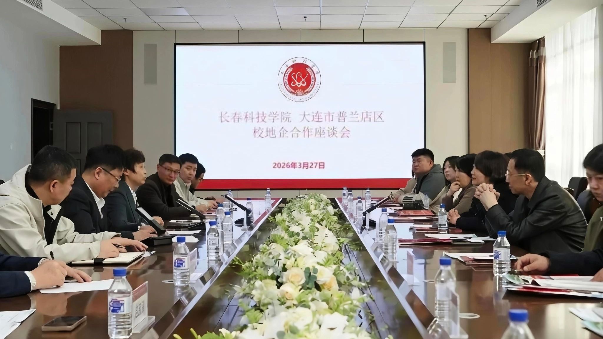 3月27日,长春科技学院与大连市普兰店区联合举办校地企合作座谈会暨“才聚莲城 智汇未来”春季专场招聘会。普兰店区人民政府副区长贺滢锦率区人社系统相关负责人及企业代表一行莅临学校,长春科技学院校长王淑坤、党委书记崔高嵩、党委副书记宋学山及各学院、相关部门负责人共同出席活动。党委常委、就业工作处处长孙大伟主持座谈会。座谈会伊始,与会人员共同观看《莲城普兰店》《东华教育集团》《长春科技学院》宣传片,全面了解普兰店区发展特色、...