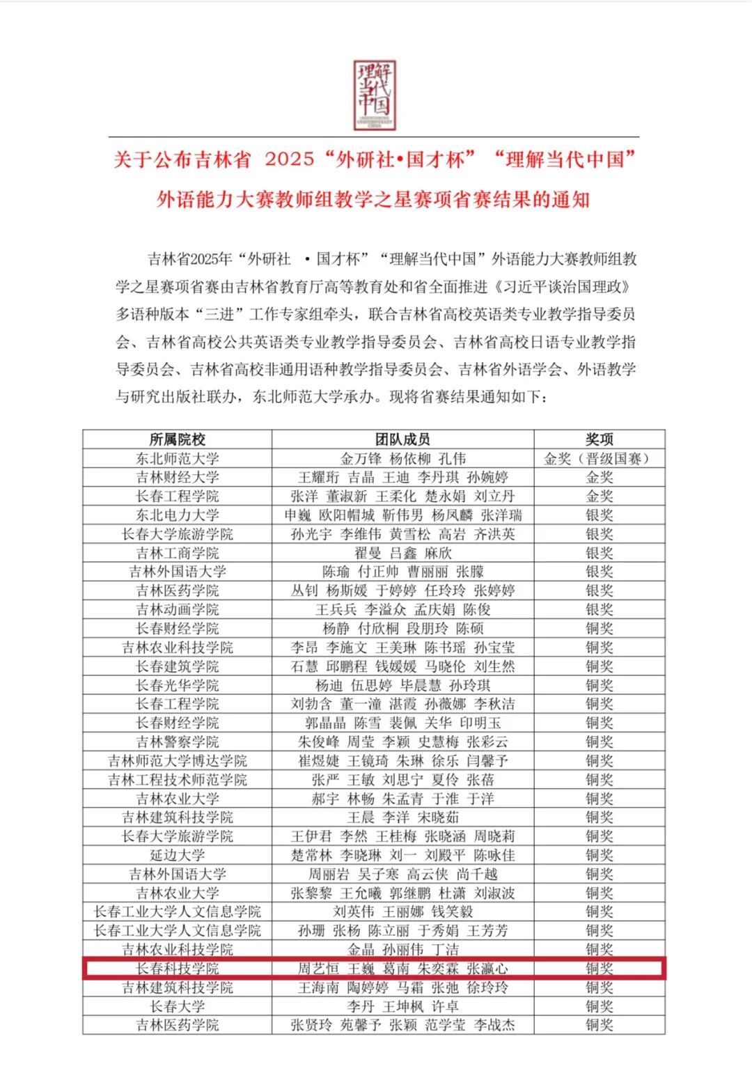 喜报 | 长春科技学院教师团队在省“外研社·国才杯”大赛中斩获铜奖彰显教学实力