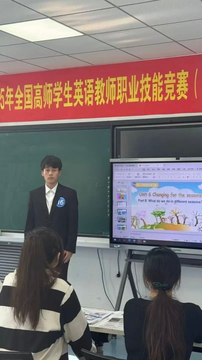 经过初赛选拔,教育与文化传播学院2023级英语1班詹家妮同学与2025级英语1班武梓恒同学脱颖而出,代表学校参赛。教育与文化传播学院高度重视此次比赛,赛前专门组织教学设计专题培训,系统讲解教学目标设定、课堂活动组织与教学评价策略等核心内容,并组建指导教师团队,为每位选手提供“一对一”精准辅导。备赛期间,同学们潜心钻研,通过反复备课、磨课与模拟演练,不断优化教学设计与课堂表现,有效提升了教学把控与课堂呈现能力。