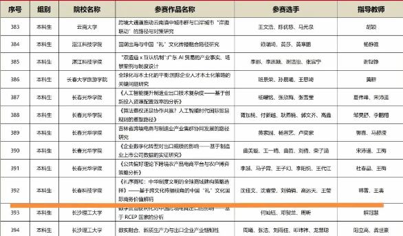 未来,经济与管理学院将继续以高级别、高水平竞赛为重要抓手,深化“以赛促教、以赛促学”机制,完善产教融合与校企协同育人模式,持续优化课程体系与实践教学环节,助力学生进一步提升创新意识与实践能力,为国际经贸领域培养更多应用型、复合型优秀人才。