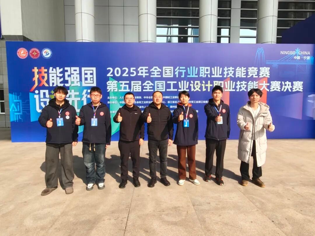 学院领导与第五届全国工业设计职业技能大赛决赛选手和教练合影