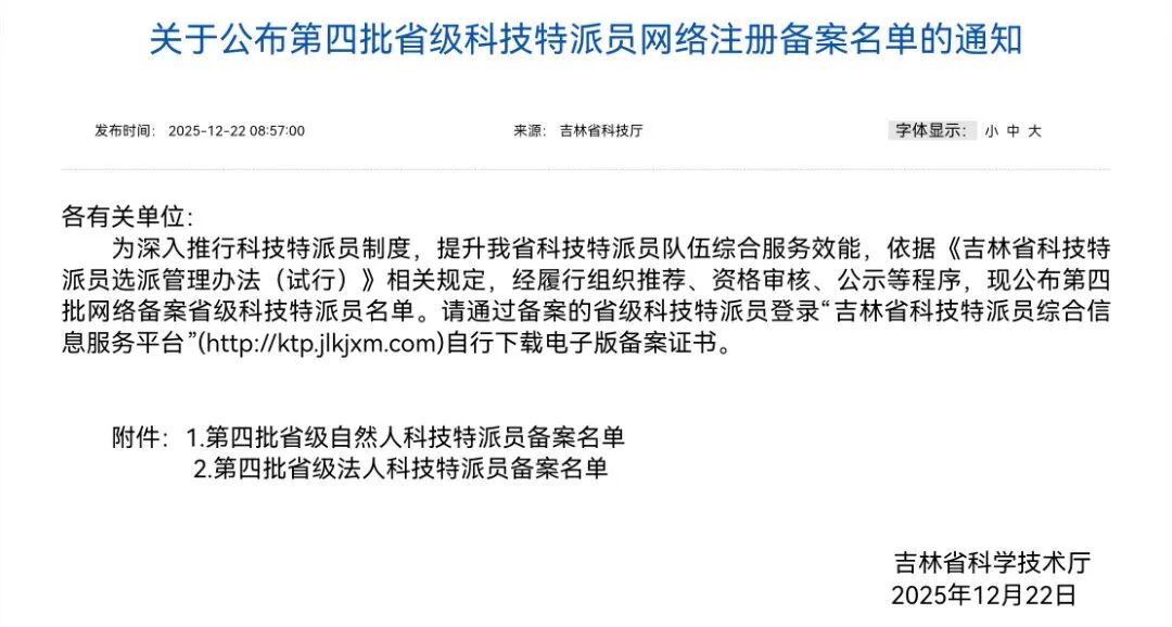 依据《吉林省科技人才助力企业创新跃升三年行动方案》和《吉林省“科创专员(科创副总)”常态化选派工作方案》,经申报审核、专家评审、省科技厅党组审议和公示,学校贾冬舒、孙永杰2位科技人才被正式选派入企。