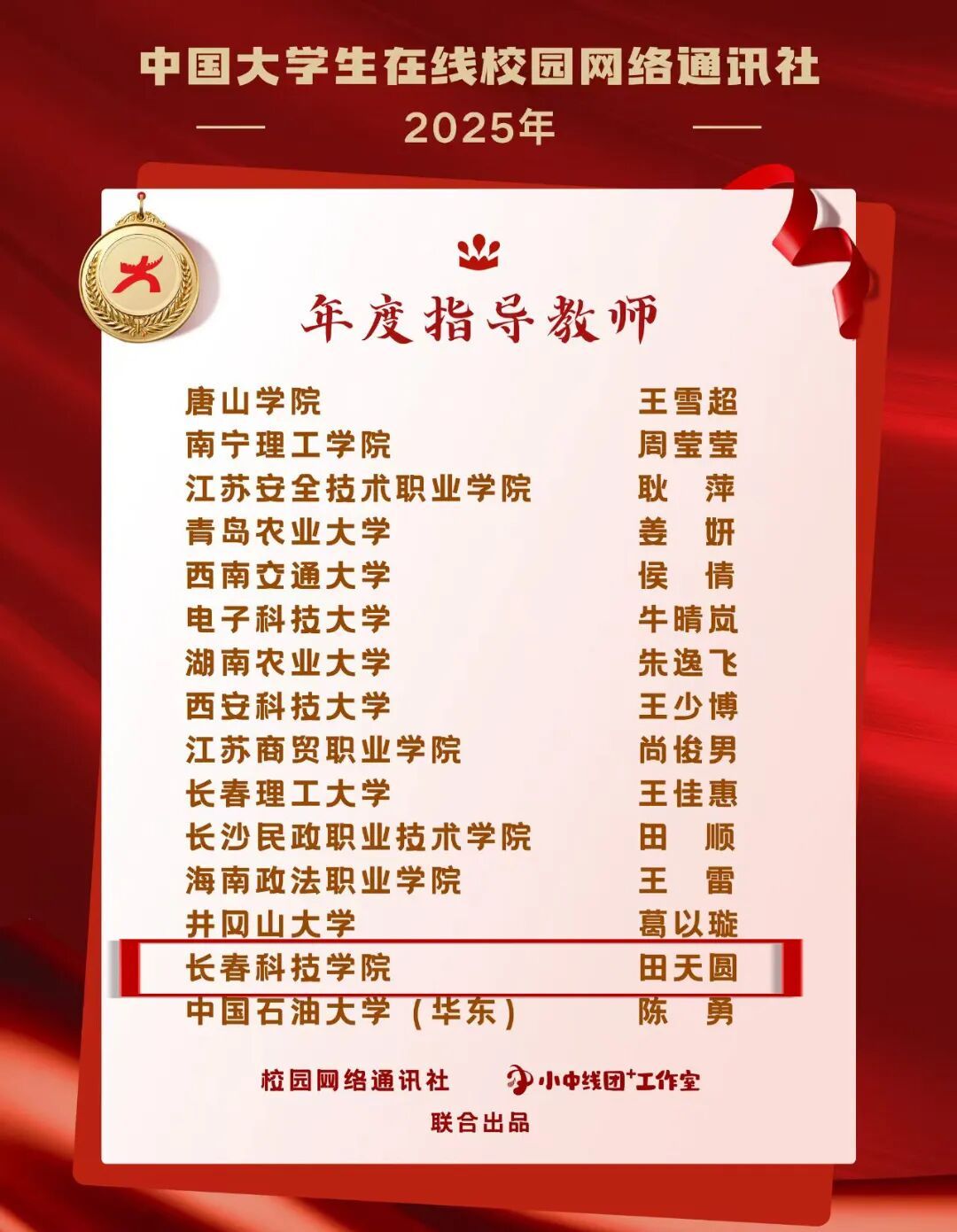 新征程再出发,学校将以此次获奖为新起点,继续深耕校园网络文化阵地,凝聚青春力量,创作出更多有温度、有深度、有热度的校园佳作,让长科声音传得更远、更响亮!为全体师生点赞,为优秀的我们喝彩