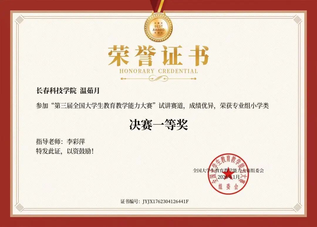 教育与文化传播学院在本次赛事中取得的优异成绩,既是教育与文化传播学院学生专业能力与实践素养的集中体现,也是学校强化实践教学的成果彰显。未来,教育与文化传播学院将继续搭建各类教学实践竞赛平台,不断提升学院学生的教育教学实战能力,在实践历练中夯实专业基础、锤炼育人本领,以青春之力肩负起基础教育发展的时代使命,书写师范教育的崭新篇章。