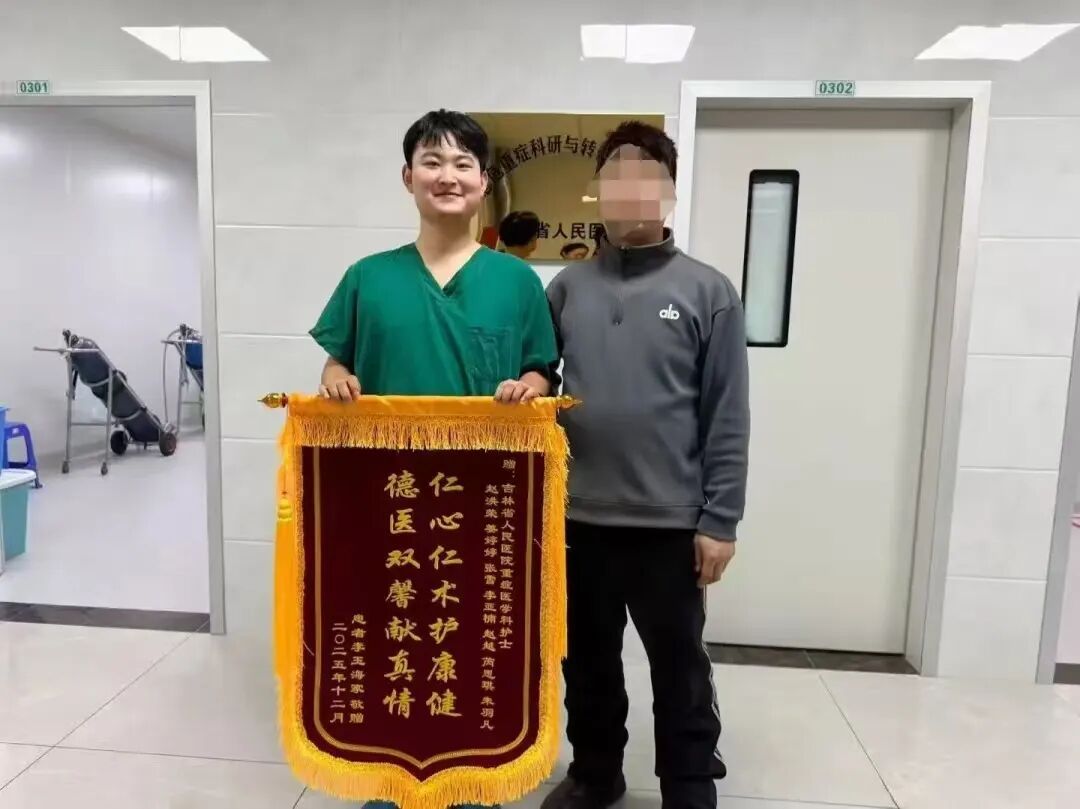 在吉林省人民医院ICU这个充满挑战的战场上,他用实际行动践行着 “以患者为中心” 的护理理念,让青春力量在守护生命的一线闪光。锦旗不仅是患者家属的感谢,更是对学院护理教育成果的肯定。未来,我们期待更多像朱羽凡一样的护理学子,在临床实践中不断成长,用专业和爱心为患者筑起坚实的健康防线。