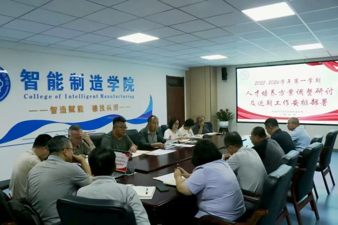 8月28日下午,智能制造学院在1211会议室召开2025-2026学年第一学期人才培养方案调整研讨及近期工作安排部署会议。学院院长杨继,副书记臧连兴,副院长隋庆茹、刘晓彦及各专业主任(副主任)、办公室主任、学工主任等出席会议,杨继院长主持会议。