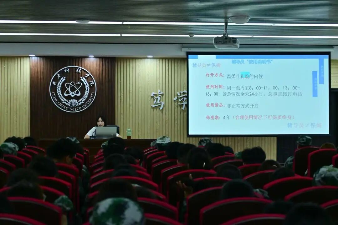 随后,李丰羽老师进一步补充说明相关内容。她从实际案例出发,再次强化新生反诈意识,建议新生遇到可疑情况及时联系辅导员或学校保卫处;针对军训期间的健康防护,她提醒新生做好防晒、及时补充水分,如有身体不适需第一时间报告;在处分问题上,她强调“纪律是自由的保障”,希望新生树立规则意识,避免因小失大;关于宿舍卫生,她倡导新生制定卫生值日表,共同维护宿舍环境,促进室友间的和谐相处。