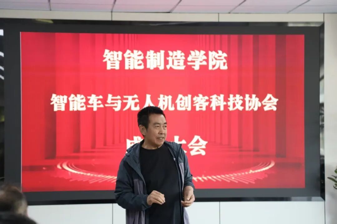 杨继院长强调,学院一直将科创人才培养作为重点工作,从政策支持到资源倾斜,始终致力于为同学们搭建优质的科创平台,而智能车与无人机创客科技协会的成立,正是学院科创工作的又一重要成果。“协会的成立,不仅为同学们提供了探索科技的舞台,更契合了新时代对科技创新人才的需求。” 院长指出“办法总比困难多,持续为协会发展保驾护航”院长的话语沉稳而有力,学院会持续为协会发展保驾护航每一句都饱含对协会的期待与支持。