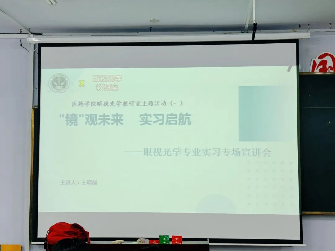 为帮助同学们精准把握实习方向,平稳衔接校园与职场,医药学院眼视光学专业于10月20日在第二教学楼2102举办实习专场宣讲会,由眼视光学专业主任王晓晶老师主讲,为大家深度解析实习安排、行业动态及职业发展路径,让每一位怀揣梦想的“视光人”都能明晰方向、从容启航。