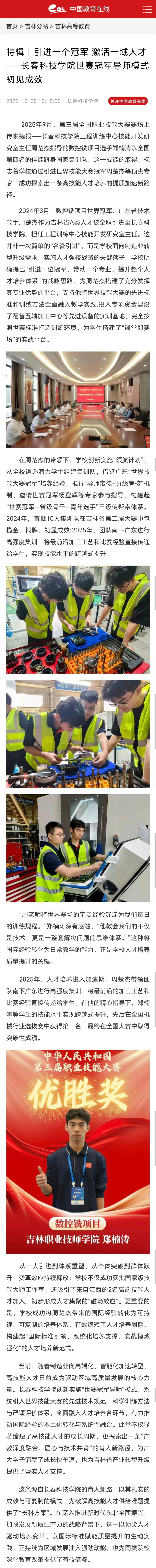 特辑|引进一个冠军 激活一域人才——长春科技学院世赛冠军导师模式初见成效