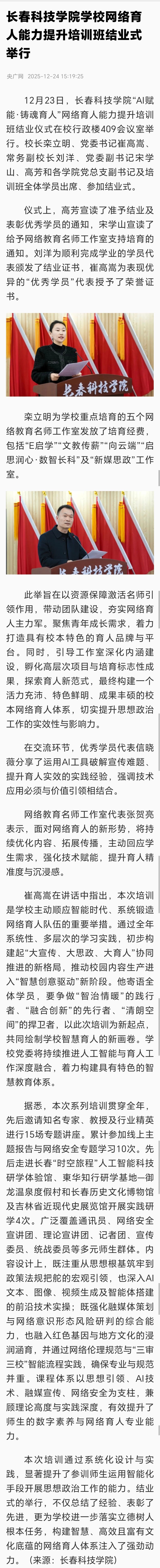 长春科技学院学校网络育人能力提升培训班结业式举行_央广网 (cnr.cn)