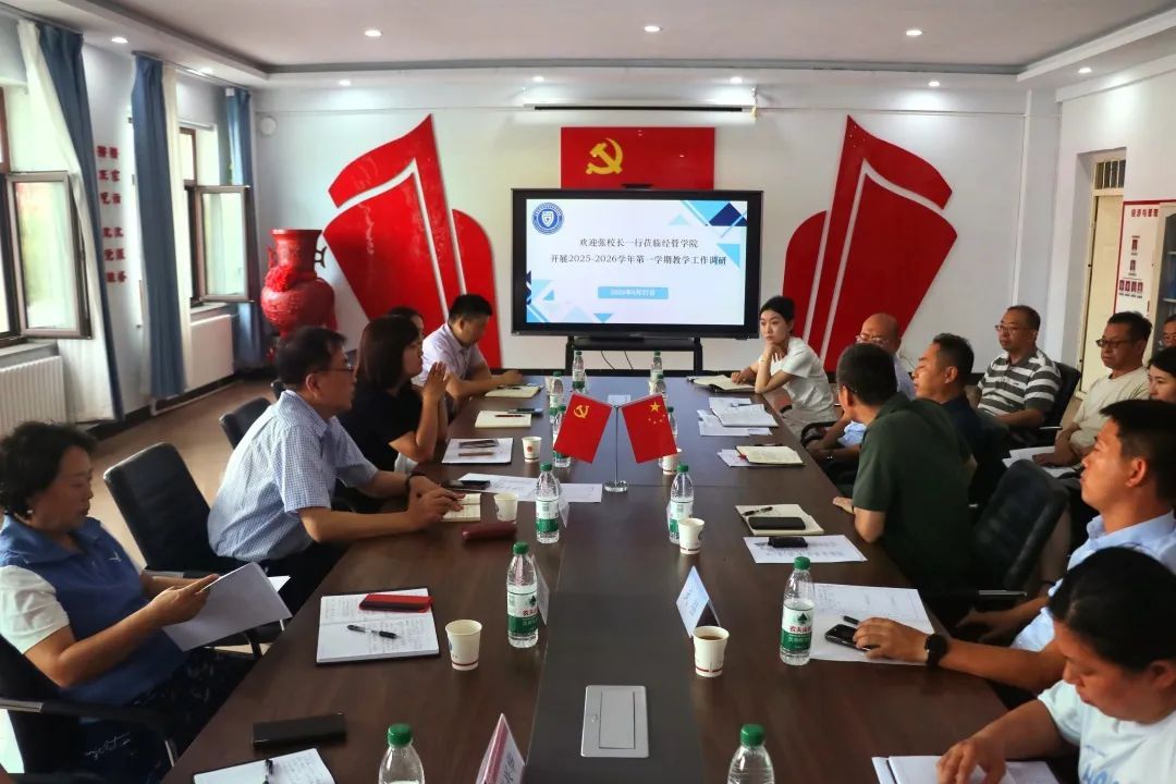 8月27日,长春科技学院副校长张代治、教务处处长宋卓、教学质量评价办公室主任张晓晖等一行莅临我院开展工作调研。此次调研聚焦产教融合推进情况与人才培养方案修订情况,旨在深入了解学院教学改革实践成效,精准破解发展瓶颈,为进一步提升应用型人才培养质量奠定基础。经济与管理学院院长赵立夫、副院长武强、李尚越及各专业主任参加了调研座谈会。