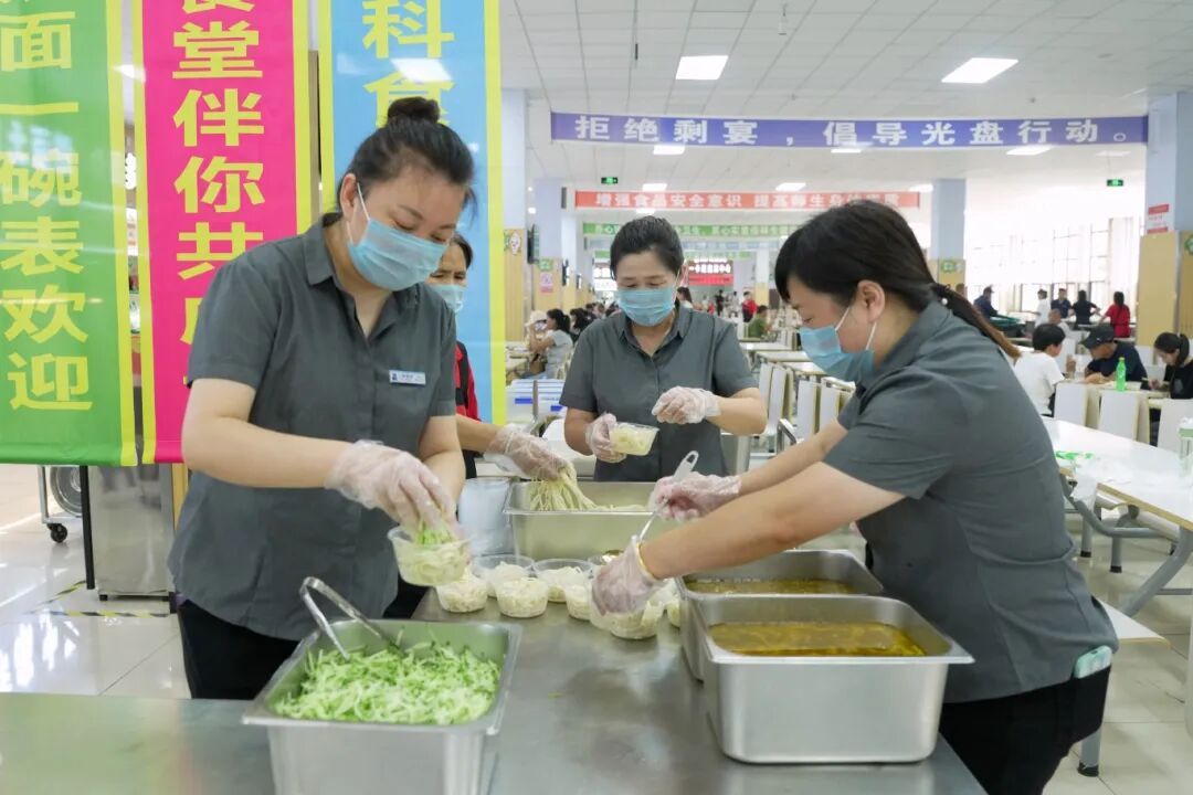 “免费提供打卤面……”食堂经理吴立忠热情的向就餐的新生和家长打着招呼。他表示,为保障活动顺利开展,食堂提前做了周密准备:严格筛选新鲜食材,确保食品安全;开展专项培训,提升员工服务礼仪与现场秩序维护能力;优化场地布置,营造温馨就餐氛围。