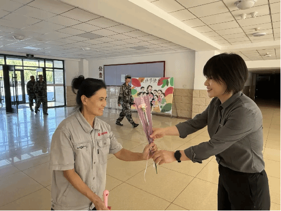 接过鲜花的瞬间,许多后勤人员的脸上都露出了朴实又真挚的笑容。教学楼门卫李师傅捧着康乃馨,指尖轻轻拂过花瓣,眼角带着笑意说:“每天看着学生来上课、老师去备课,总觉得自己的活儿很普通,没想到教师节学校还能想着我们,这花拿在手里,心里比吃了蜜还甜,以后更得把楼宇守好!”宿舍楼门卫张阿姨则小心翼翼地将花放在值班室的窗台上,特意整理了一下花瓣,笑着表示:“学生们总说我像‘妈妈’一样管着他们,现在学校给我送花,感觉自己也成了被惦记的人,一定不辜负这份心意,让孩子们在宿舍住得安心!”现场没有华丽的仪式,却满是真诚的互动,每一个笑容、每一句感谢,都让“被看见、被重视”的幸福感在后勤人员心中流淌。