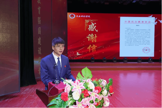 校长助理刘立东宣读中国民办教育协会发来的《感谢信》和《关于曹莹的表彰决定》