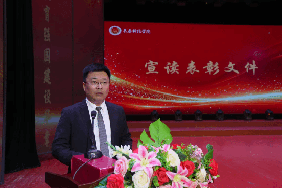 校长助理刘立东宣读《关于表彰2025年度考研、专升本的决定》和《关于表彰2024-2025学年教学竞赛、教育教学研究成果及学生竞赛优秀指导教师的决定》