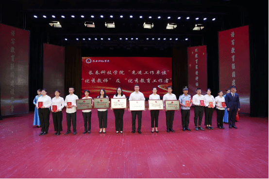 校长助理刘立东为长春科技学院“先进工作单位”“优秀教师”及“优秀教育工作者”代表颁奖