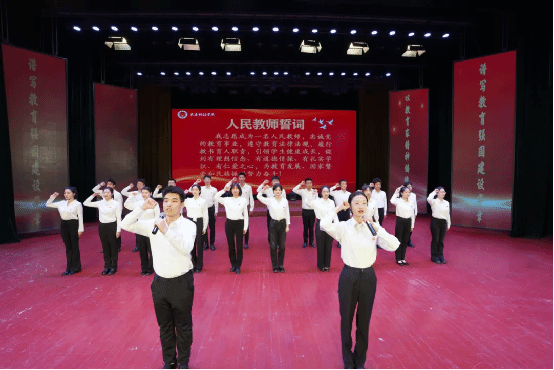 “我志愿成为一名人民教师,忠诚党的教育事业……”在庄严的仪式中,两名教师代表引领20名新入职教师,共同重温《人民教师誓词》,坚定初心使命。