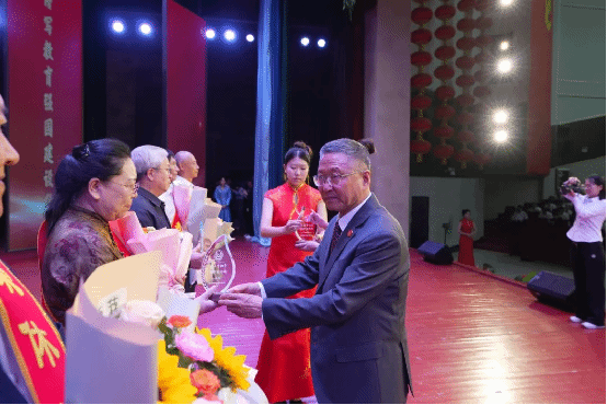 大会特设荣休致敬环节。青年教师向荣休教师献花,校长颁发“纪念奖杯”,表彰其贡献,寓意师道薪火、代代相传。
