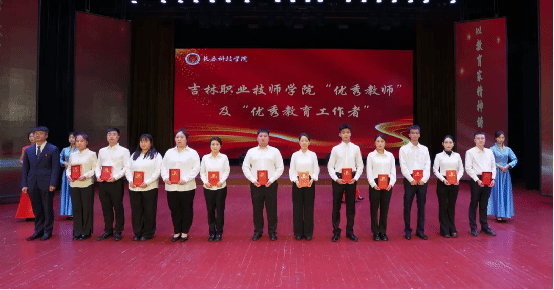 校长助理刘立东为吉林职业技师学院“优秀教师”及“优秀教育工作者”代表颁奖