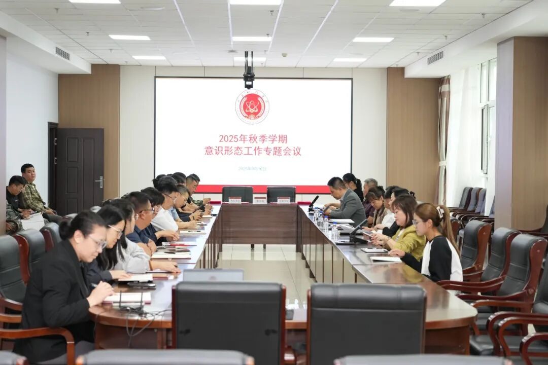 9月16日,长春科技学院2025 年秋季学期意识形态工作专题会在行政楼405会议室召开。会议全面总结上一年意识形态工作情况,系统部署下一阶段重点任务。校党委书记崔高嵩出席会议并讲话,校党委副书记高芳主持会议。