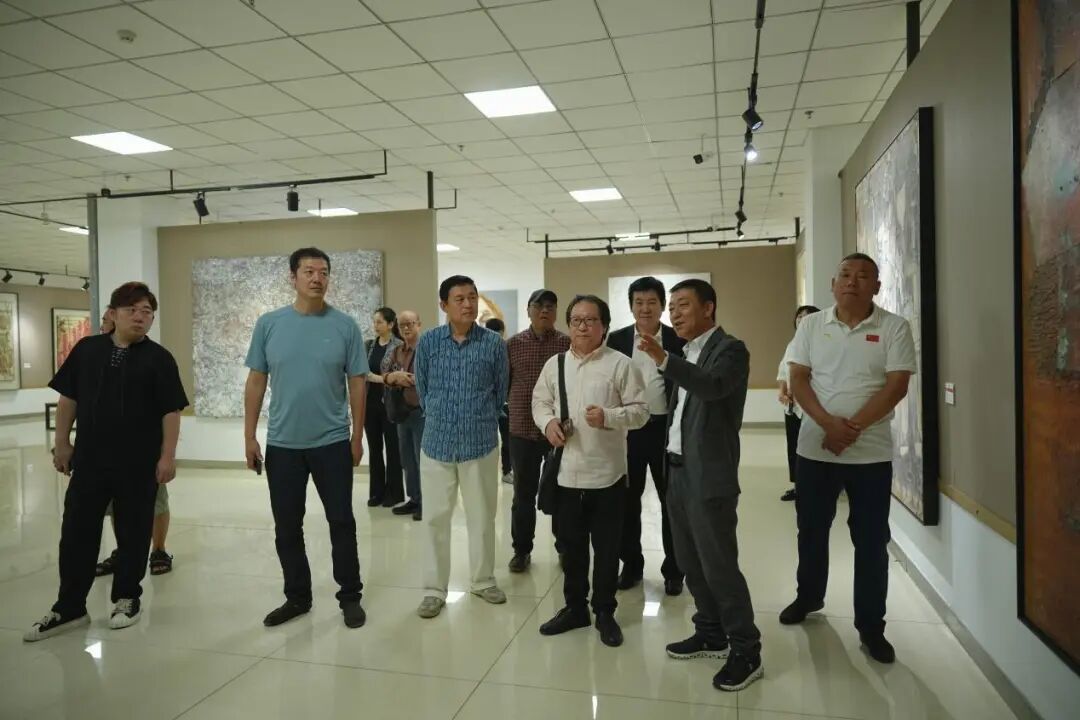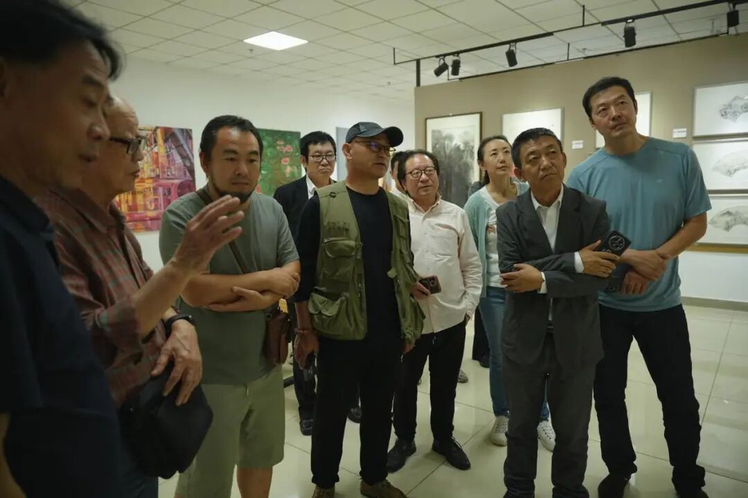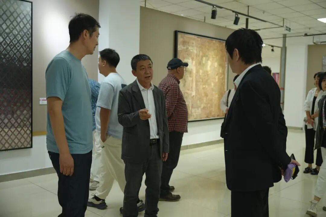 专家们在李文成院长的陪同下参观了学院教学成果展厅,这里集中展示了历届学生的优秀毕业作品。这些作品是组群式项目教学的实践成果,全面展现了学院学子扎实的专业功底、丰富的创新思维和深厚的人文素养。李文成院长向专家们详细介绍了包括入选全国美展及省级美展的油画与综合材料创作、在国内外重要学科竞赛中斩获佳绩的作品,以及这些作品背后所体现的“组群式项目教学”育人理念与实践路径。专家们在作品前驻足良久,细致询问创作理念及创作过程,对作品的思想性、艺术性与实践性给予高度评价,并针对如何提升学生创作水平提出意见建议。“这些作品的质量令人惊喜,不仅体现了学生个人的才华,更反映了学院整体教学水平和高水平的指导能力。”一位专家感叹道,“从作品中能看到明确的培养思路和扎实的教学过程,特别是‘组群式项目教学’的成果在这里得到了集中体现。”