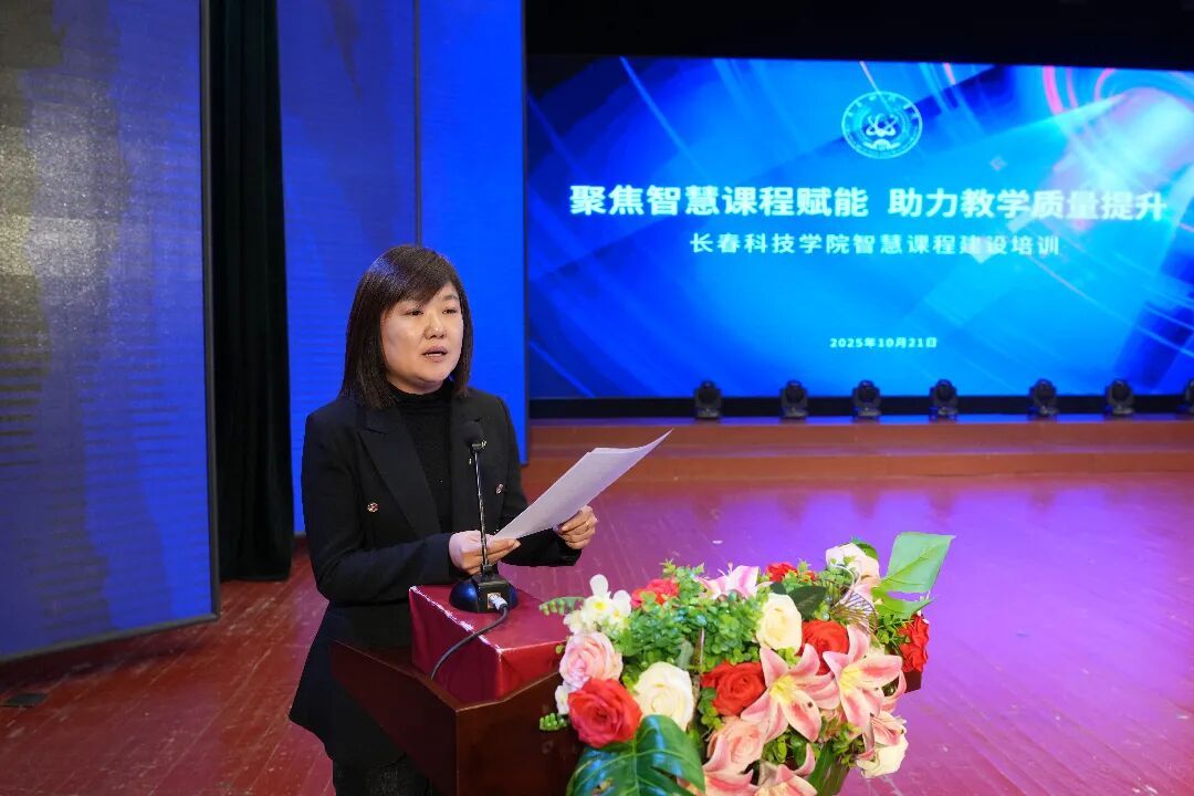 落实教育部《教育数字化战略行动实施方案》及吉林省教育厅智慧课程建设工作要求,长春科技学院于2025年10月21日下午在东鳌国际会议中心成功举办“聚焦智慧课程赋能,助力教学质量提升”专题培训。本次培训由教务处主办,相关校领导、各分院(部)院长(主任)、副院长(副主任)、专业主任、教师发展中心、教学质量评价办公室及全体无课教师共同参会。