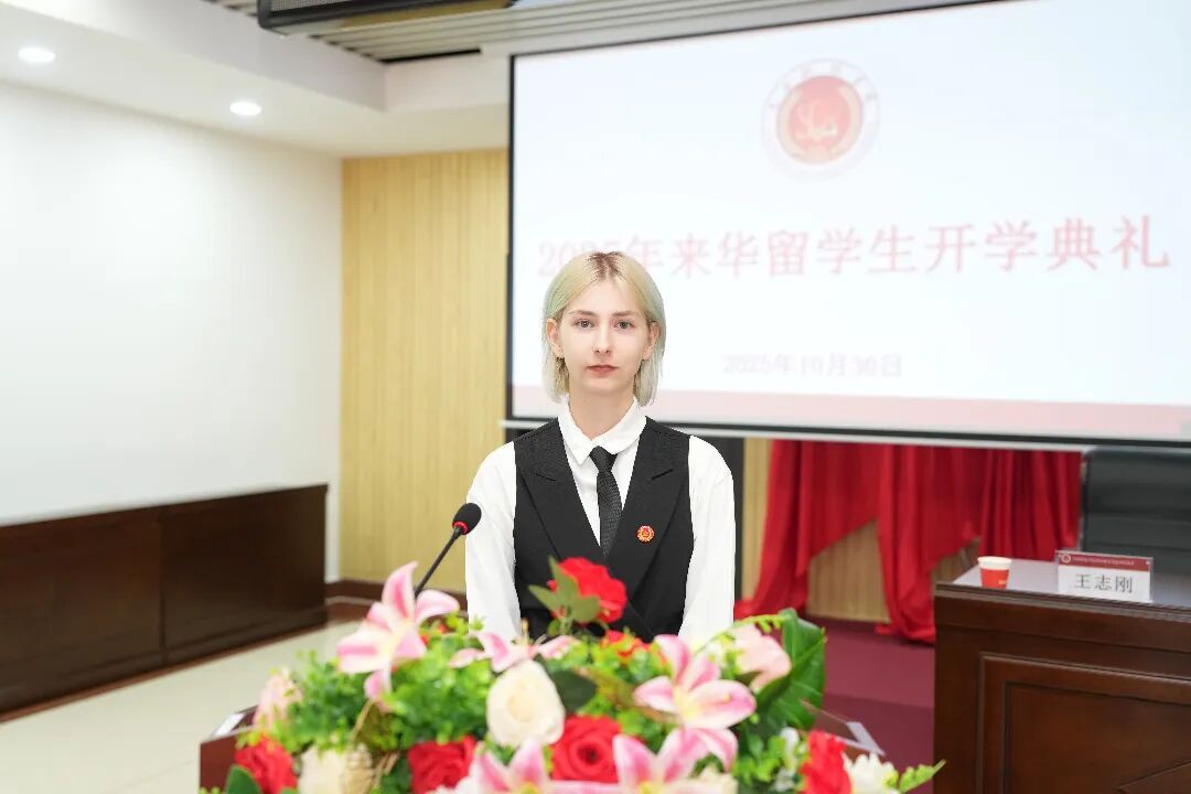 典礼上,院长王志刚回顾了九年来的国际化办学历程:自2015年迎来首批俄罗斯交换生至今,已成功培养了300余名来自俄罗斯、韩国、尼日利亚等国家的学子,并形成了独具特色的“语言+专业”双轨培养模式。2025级新生的加入,为学院蓬勃发展的国际化事业注入了新的活力。