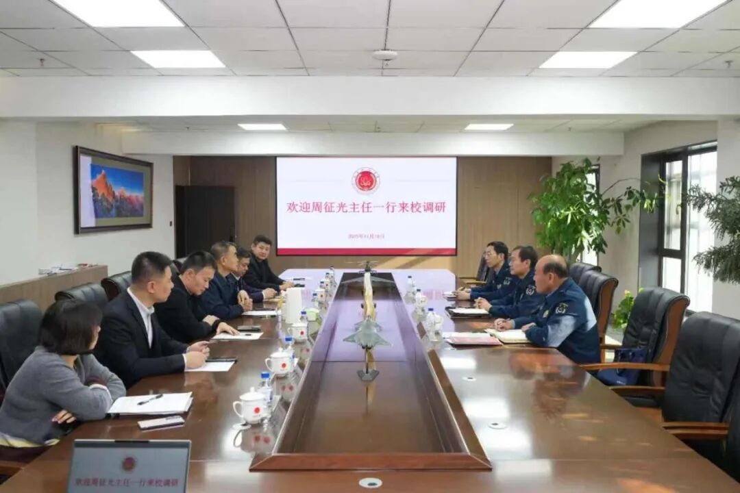11月19日上午,空军航空大学航空基础学院政工部主任周征光、参谋部副参谋长甘世春、政工部组织纪检科科长文建毅一行3人来学校调研。董事长张电达、党委书记崔高嵩、党委副书记宋学山及相关职能部门负责人参与调研活动。
