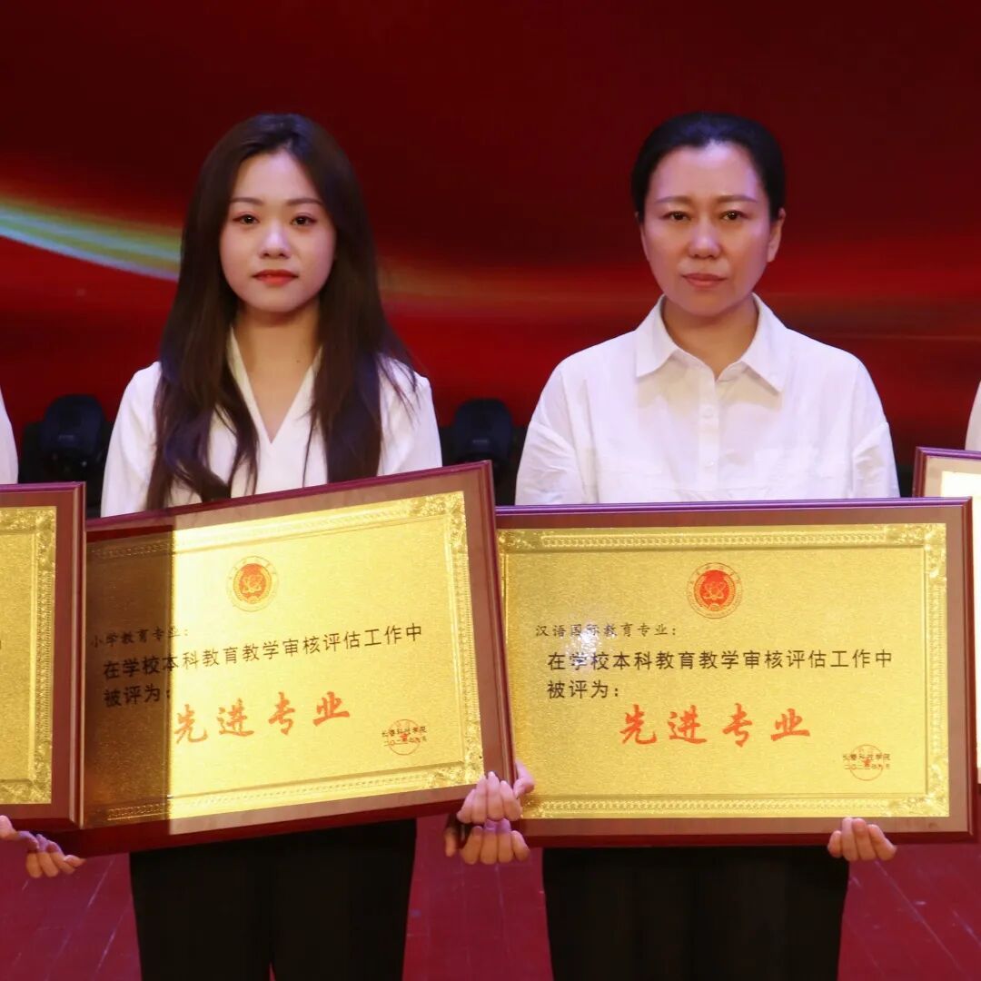 2025年9月10日,学院获评审核评估工作“先进集体”,汉语国际教育专业、小学教育专业获评审核评估工作“先进专业(教研室)”。学院始终坚持以评促建、评建融合,构建多层次评建组织体系,分阶段推进自查整改,系统梳理制度体系、夯实教学档案,形成闭环式质量提升机制。依托OBE理念优化人才培养模式,强化师资建设与教学资源供给,深化产教协同与课程思政创新,学院在教育教学内涵式发展方面成效显著,高标准完成审核评估各项任务,彰显了高水平应用型学院的建设实力。