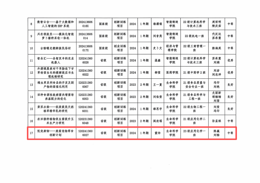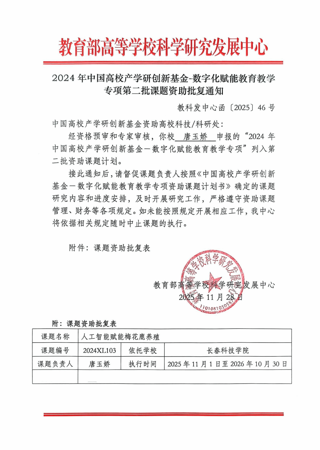 全年共有多项国家级、省级大学生创新创业训练计划项目及高教科研课题顺利结项,涵盖鹿产品加工、功能食品开发、乡村振兴与科普教育等方向,形成了一批可持续推进的成果储备。
