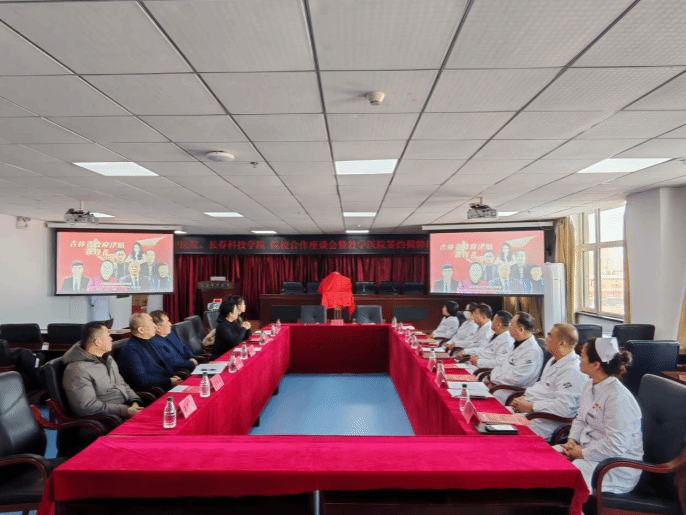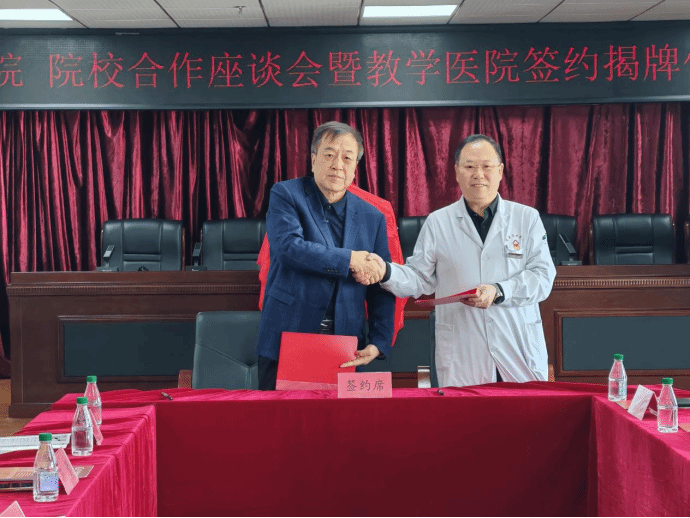 座谈后,双方举行了学校教学医院签约揭牌仪式。首先,张代治副校长与张洪波院长共同签订《长春科技学院与德惠市中医院建立教学医院合作协议》,一纸协议凝聚着双方深耕中医药人才培养的共同初心。