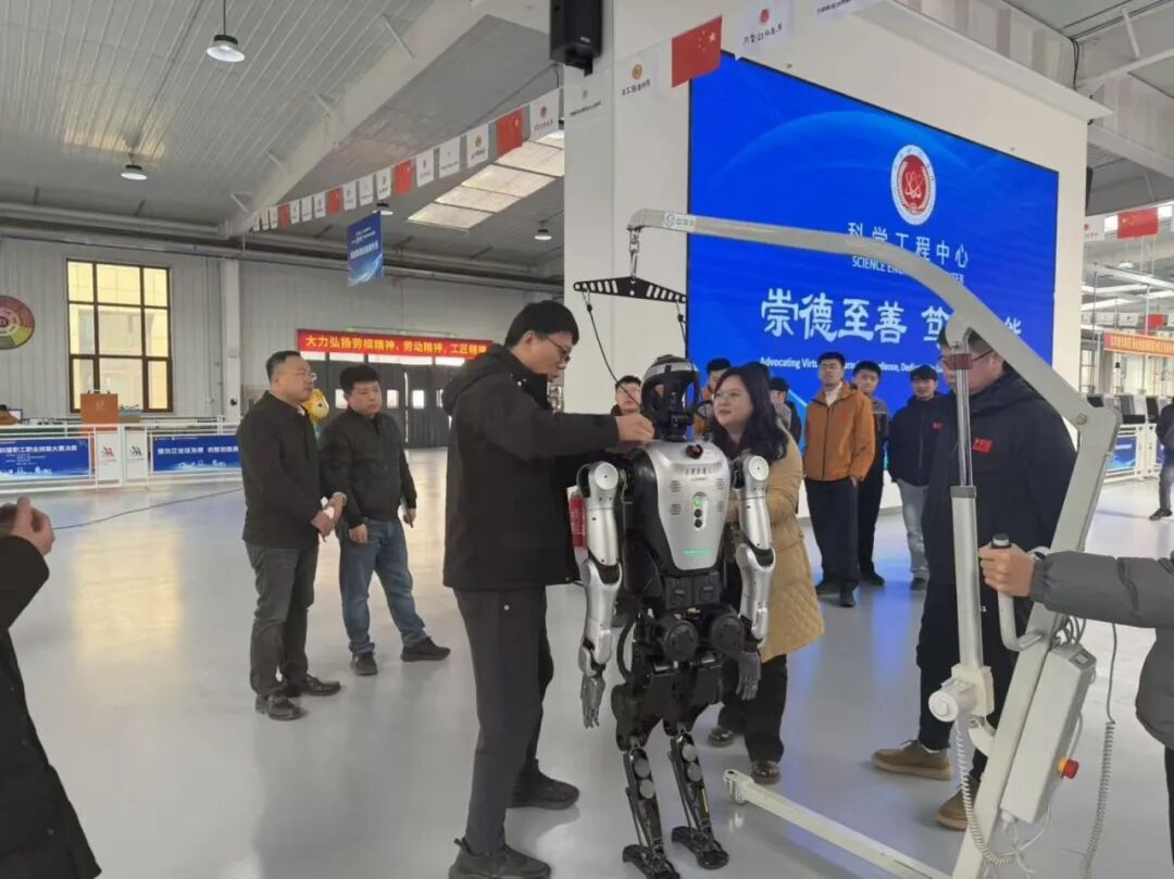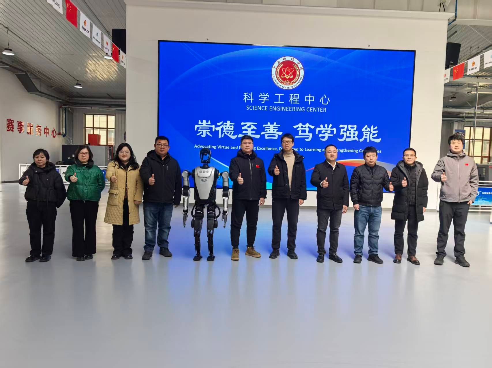 洽谈会后,乐聚机器人技术团队在学校科学工程中心开展了夸父 4Pro(四代) 人形机器人功能演示,该款机器人搭载灵巧手,是企业面向工业场景落地的核心机型。技术人员现场展示了机器人的高动态行走、精准抓取等核心功能,学校参会教师与科学工程中心全体教师近距离观摩了机器人在模拟工业场景中的作业流程。