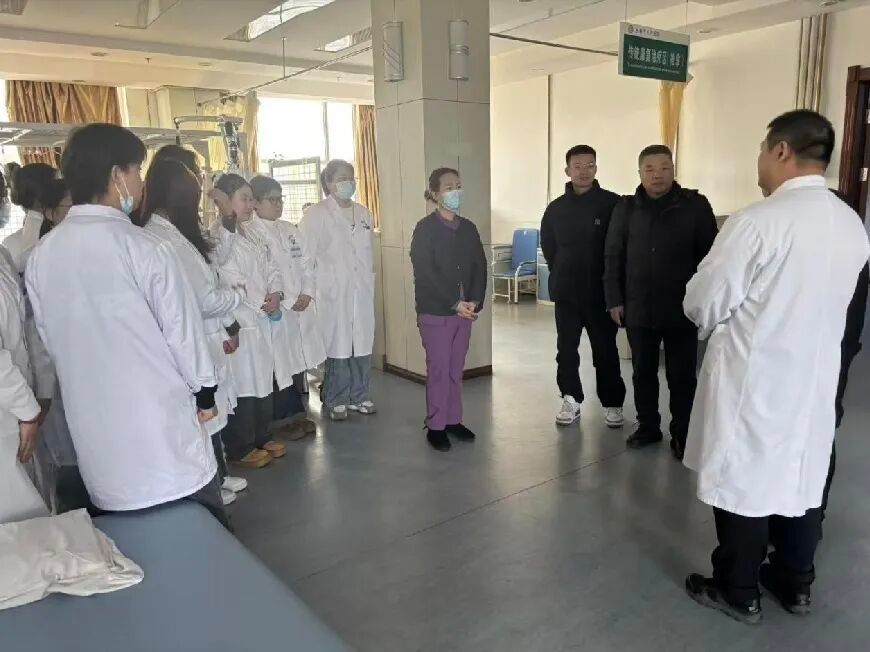袁洪平主任与在该科室实习的长春科技学院学生进行了交流,了解其实习感悟与遇到的问题,鼓励同学们珍惜临床实践机会,将理论知识转化为专业能力。袁洪平主任与尚炜明老师也围绕实习大纲修订、校企联合课题研究等内容,与医院方展开了具体探讨,并达成了后续共建实训课程、共享教学案例的合作意向。