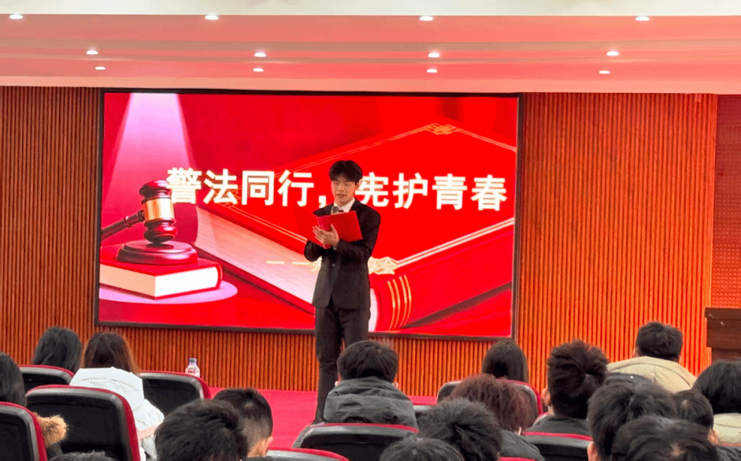 宣讲会伊始,主持人对到场师生表示热烈欢迎,并简要阐述了在宪法日开展此次活动的深刻意义。他表示,宪法是国家的根本法,法治教育是青年成长中的重要一环,而校园安全更是学生学习和生活的基础保障,本次分享会旨在将法治意识与安全意识深度融合,引导同学们做知法、守法、用法的新时代青年。