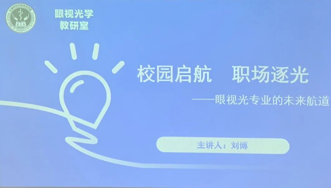 为助力学生明晰眼视光行业前景、找准职业发展方向,医药学院眼视光学教研室于2025年11月18日在眼视光实训室210,特邀刘博老师以“校园启航,职场逐光”为主题开展专题讲座。