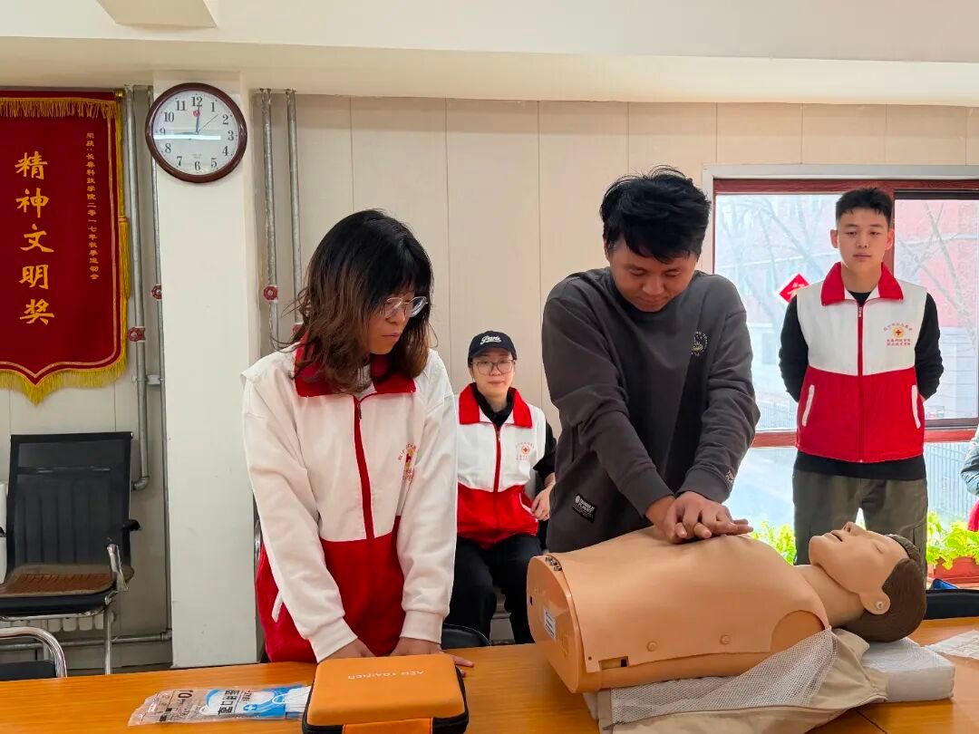 为深刻吸取近期长春市供暖企业安全事故教训,切实筑牢校园供热安全生产防线,提升后勤一线人员应急处置能力,近日,长春科技学院教学保障部联合职业技术学院,组织维修中心37名锅炉工及一线工人开展心肺复苏(CPR)及自动体外除颤器(AED)使用专题培训。本次培训由职业技术学院口腔医学及护理学专业学生万跃宇担任主讲,李昊燃、李莎莎、潘思彤、万奕等志愿者共同协助完成教学。