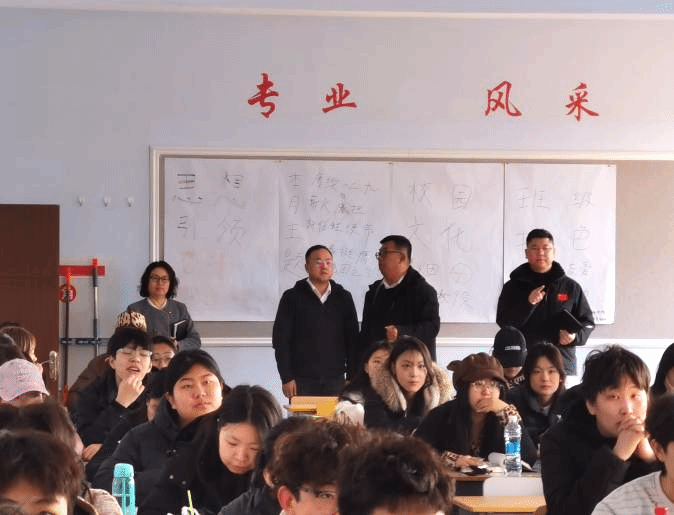 长春科技学院常务副校长、智能制造学院院长刘洋,学院党总支副书记、副院长臧连兴,副院长隋庆茹、张兴华,办公室主任赵莹,学工办主任张健,教学秘书韩笑组成联合巡查组,深入各教学场所,全面巡查开学第一课的整体运行情况。