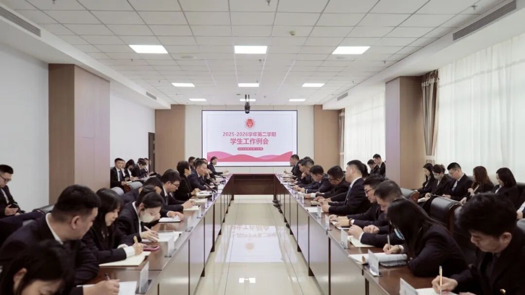 会上,宋学山副书记立足新时代高校学生工作新形势新要求,围绕思想引领、成长赋能、服务保障、安全稳定工作主线,对本学期九项重点任务进行系统部署。一是持之以恒强化学风建设。坚持把学风建设作为学生工作的基础性工程,持之以恒、常抓不懈,严格到课率督查,强化日常行为规范管理,聚焦突出问题整治,着力营造勤学善思、求真笃行、纪律严明的优良学风。二是精准发力推进就业工作。紧盯毕业生就业关键窗口期,深化就业指导、岗位推送与精准帮扶,不断拓宽就业渠道、优化就业服务,全力促进毕业生更加充分、更高质量就业。三是筑牢防线确保安全稳定。抓实校园安全管理与舆论引导工作,健全安全隐患排查机制,强化宿舍安全、日常管理与动态监测,及时做好舆情研判与正面引导,营造平安和谐环境。四是落实制度从严教育管理。严格落实预备役教育管理各项要求,强化思想教育、纪律锤炼与日常管理,不断提升预备役学生的政治素养、军事素质与责任意识,打造信念坚定、作风过硬的后备力量。五是暖心护航抓实心理工作。完善“预防—摸排—干预—转介”全链条心理健康服务体系,常态化开展心理筛查与谈心谈话,加强危机预警与专业帮扶,用心构筑温暖有力的心理防护屏障。六是知行合一深化劳动教育。坚持理论教学与实践实训相结合,全面推进劳动教育走深走实,引导学生涵养劳动精神、奋斗精神与奉献精神,切实以劳树德、以劳增智、以劳强体、以劳育美。七是全程闭环做好实习管理。强化校外实习学生全过程跟踪、服务与保障,压实学校与实习单位双重管理责任,严格实习纪律、保障实习安全、提升实习质量,确保学生在外实习安心、家长放心、学校省心。八是凝心聚力创新校友工作。深度挖掘校友资源,搭建校友与学校、校友与在校生的沟通桥梁,创新工作模式,发挥校友在育人、就业、实践等方面的积极作用,以校友力量赋能学校高质量发展与学生全面成长。九是守正创新打造校园文创。积极探索文创工作新思路、新路径,打造具有学校特色、彰显校园精神的文创品牌,以文化创意赋能校园文化建设,丰富文化载体、厚植文化底蕴,不断提升校园文化吸引力与影响力。