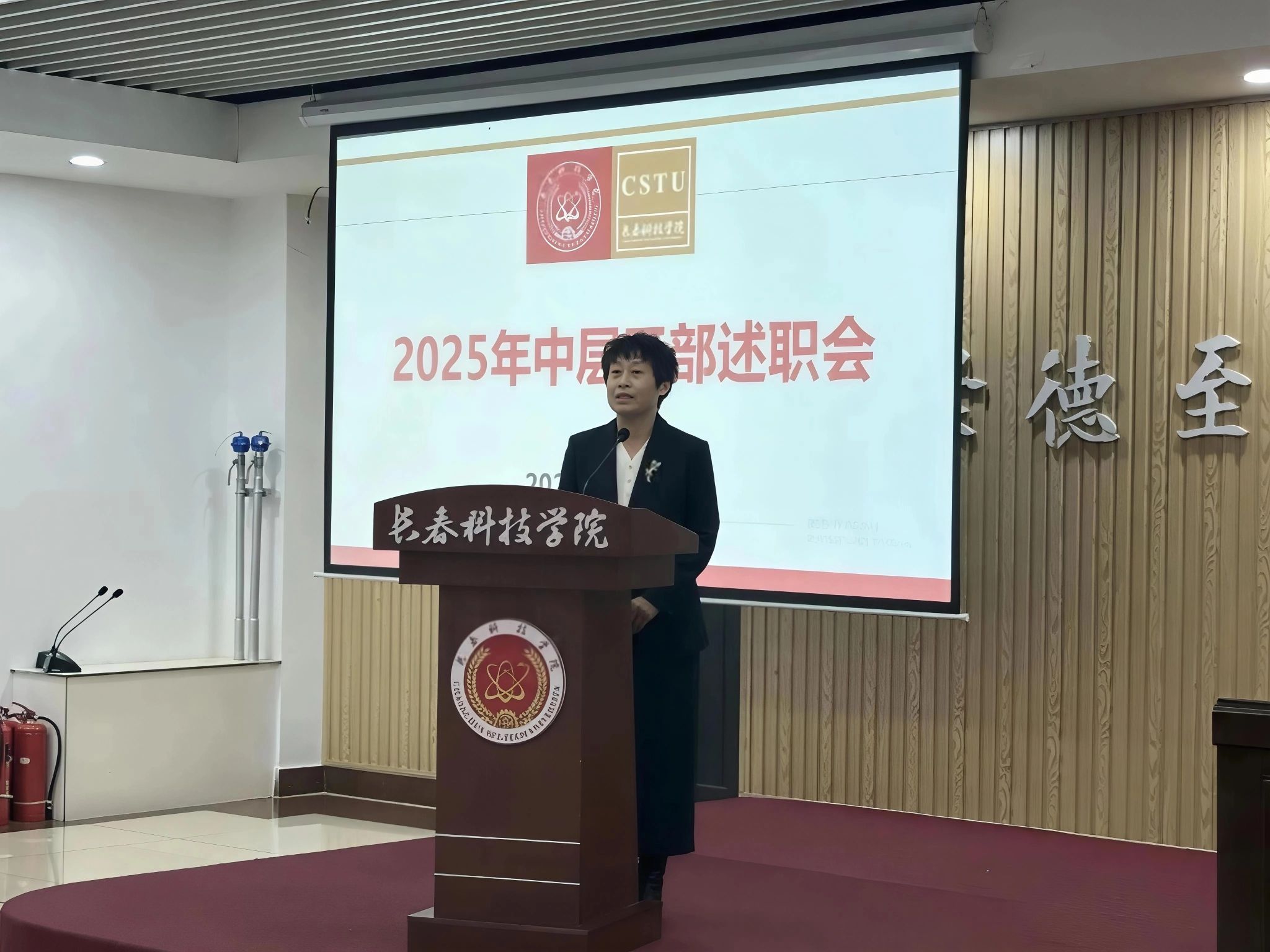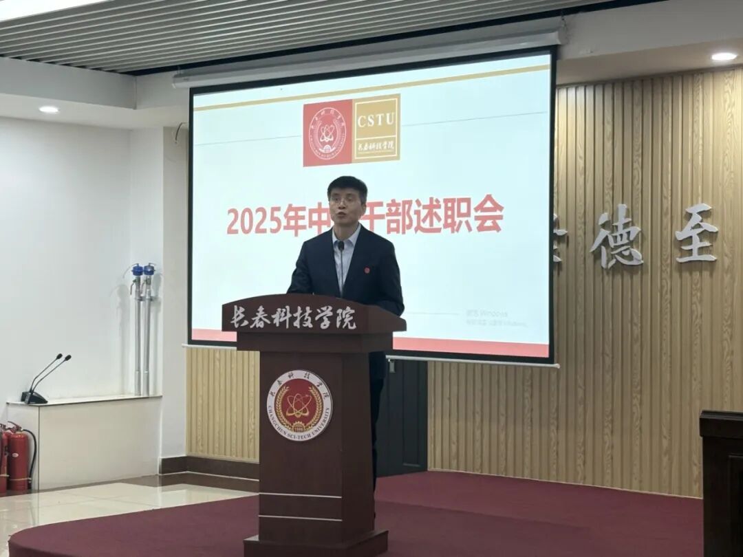 春回大地,万象更新。2026年3月26日,正值国家“十五五”规划开局起步的关键节点,长春科技学院隆重召开了2025年中层干部述职大会。王淑坤校长、崔高嵩书记及校领导班子成员、各分院部及教辅单位负责人、党总支书记、副书记、副院长、院长助理、专业主任(副主任)、教研室主任(副主任)、综合办公室主任、学工办主任、分团委书记;党政系统副科级(含)以上成员及教职工代表齐聚一堂,全面回顾过去一年的奋斗历程,共谋新一年发展大计。