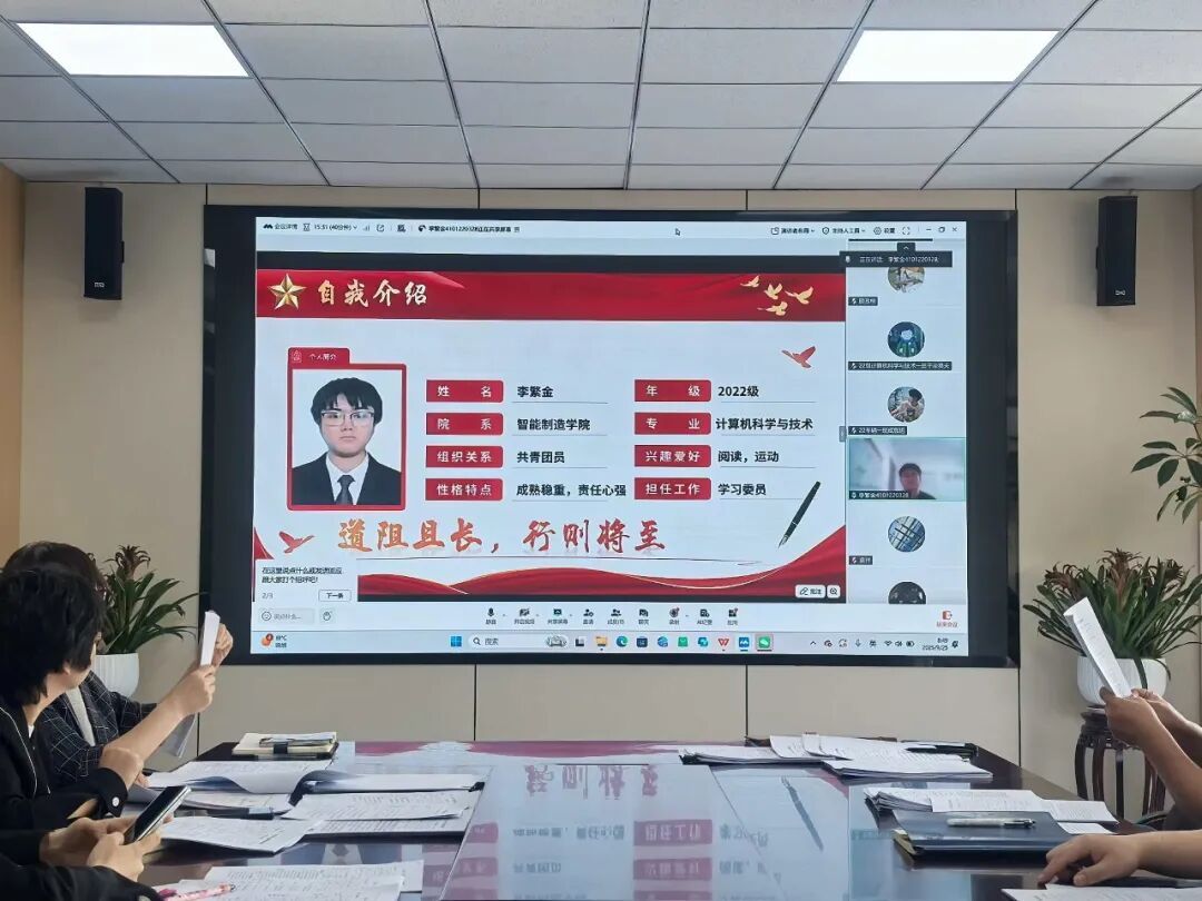 评审会采用"线上+线下"结合的答辩形式,确保所有候选人充分展现个人风采。11位候选人依次通过PPT展示,系统梳理了在学业成绩、科研创新、学科竞赛、社会实践、志愿服务等方面的突出成果。