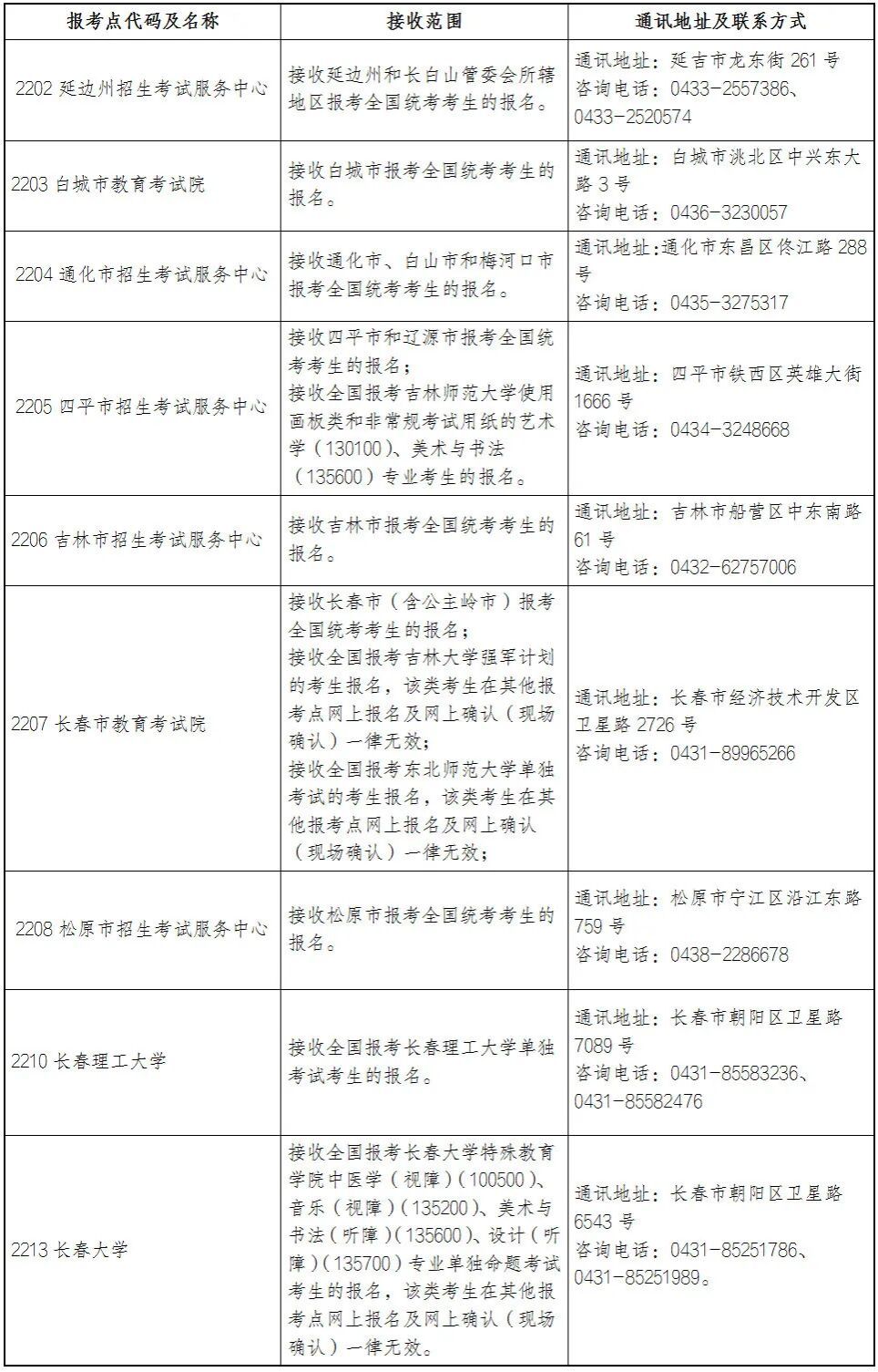 应届本科毕业生应选择就读学校所在地市(州)教育招生考试机构报考点,其中成人高校应届本科毕业生也可选择教学点所在地市(州)教育招生考试机构报考点;单独考试考生应选择招生单位所在地省级教育招生考试机构指定的报考点;报考长春大学特殊教育学院单独命题考试的考生应选择长春大学报考点;招生单位要求使用画板类、非常规考试用纸的,或初试科目中有考试时长超过三小时的,应选择省级教育招生考试机构指定的报考点;其他考生(含在考生录取当年入学前可取得国家承认本科毕业证书的自学考试和网络教育本科生)应选择户口或工作单位所在地所属报考点。