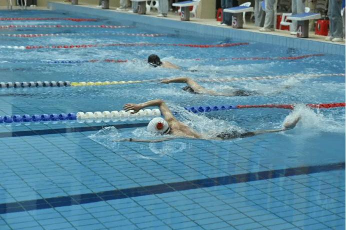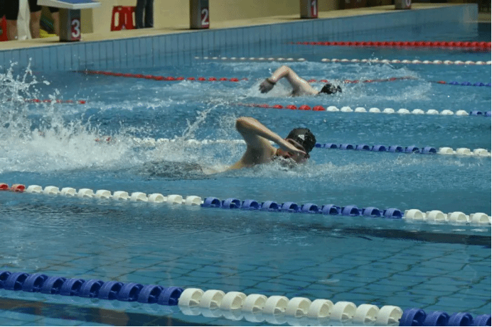 站在起跳台上的运动员们身姿挺拔,目光紧紧锁定前方的泳池。随着一声清脆的哨音响起,他们如离弦之箭般跃入水中,瞬间激起朵朵浪花。划水、蹬腿、换气,每一个动作都干脆利落、协调流畅,他们在水中奋力向前,犹如灵动的鱼儿,以最快的速度向着终点冲刺。