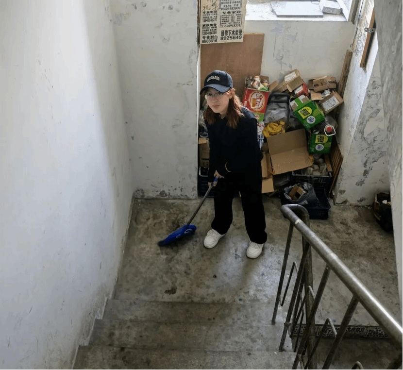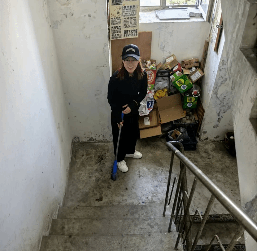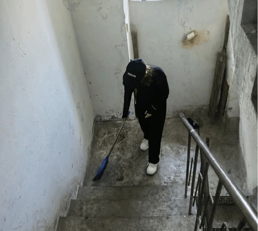 抵达社区,眼前的景象让我十分震惊。墙角堆积的落叶与尘土混杂,楼道堆满废弃纸箱和旧家具,小花园杂草丛生、垃圾散落。我和伙伴们迅速分工,拿起扫帚、垃圾袋等工具,开始清扫。一开始,垃圾的顽固、杂物的沉重,让我们有些吃力,但看到身边的志愿者们专注的模样,我咬咬牙,重新投入到清扫中。
